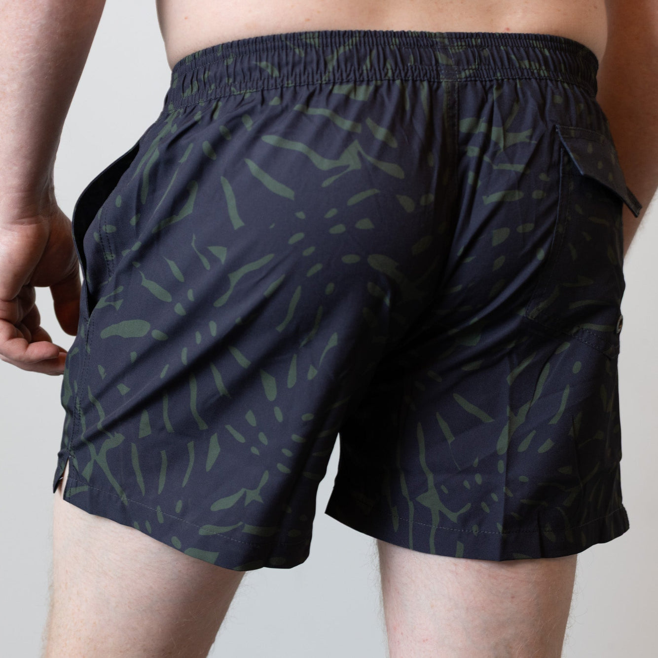 The Hidden Nature swim shorts consist of a subtle, dark green floral design. While crafted for a more prestigious setting, these swim shorts are at home in any tropical social setting. Our shorts are designed with comfort and longevity in mind using our four way stretch technology, quick dry fade resistant material, two front pockets, one velcro back pocket, and our very soft mesh lining.